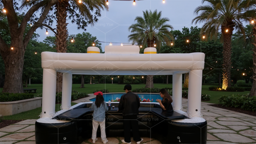 The inflatable pool bar is an ideal centerpiece for social gatherings.  It encourages interaction among guests, as they gather around the bar for drinks or relax in the pool area.  It adds a unique and memorable element to any party, making it a popular choice for hosts looking to create a fun and engaging atmosphere.